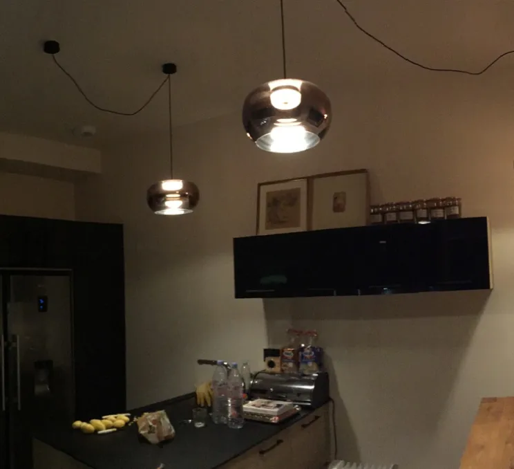 Cette suspension en verre fumé apporte un design élégant à une maison ou encore dans un restaurant.