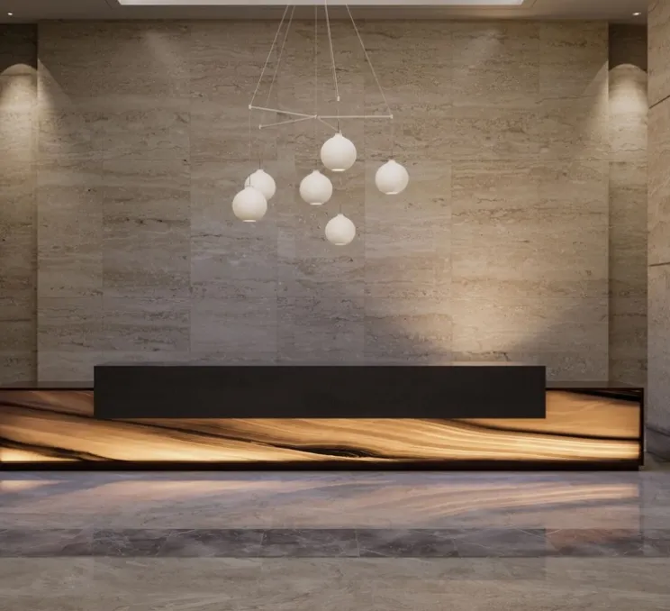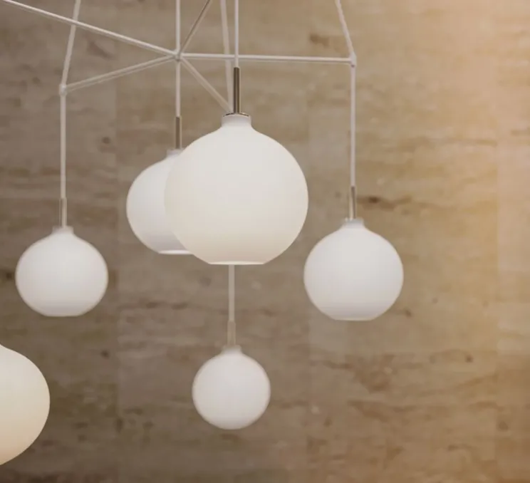 Le minimalisme des sphères en verre opalisé fournit une lumière homogène et diffuse.