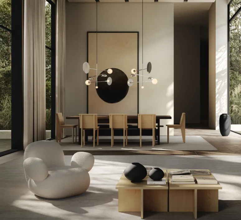 Conçu par Kristian Sofus Hansen & Tommy Hyldahl en 2021, le lustre Sahn illustre le design innovant de la marque 101 Copenhagen.