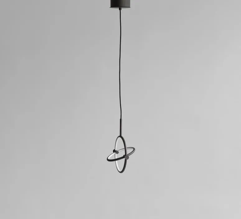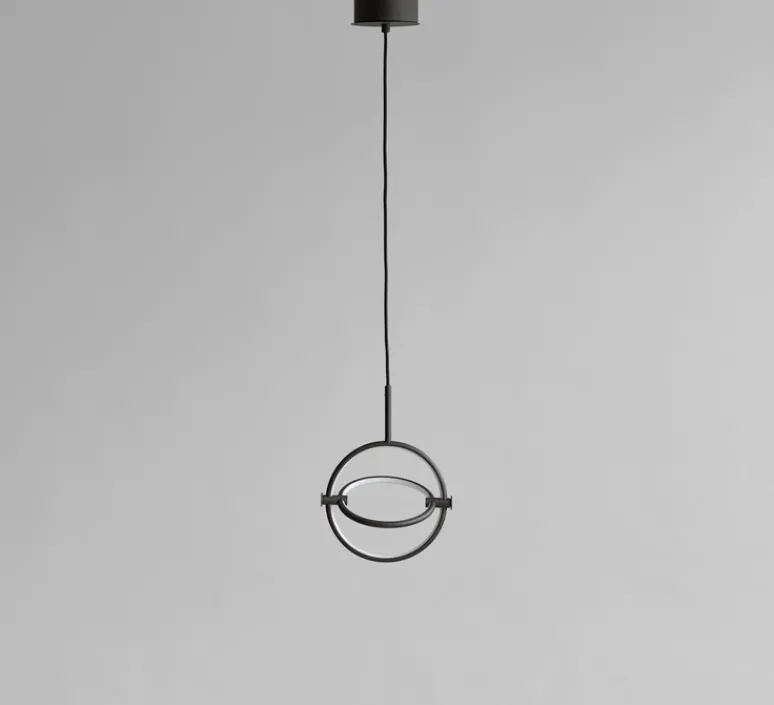 Réalisée en métal avec une finition noir brûlé, Maru Mini se distingue par son jeu de cercles imbriqués, dont l’un est pivotant pour moduler l’orientation de la lumière. Son allure sculpturale et épurée en fait un véritable objet décoratif, qu’elle soit suspendue seule ou en composition avec plusieurs unités pour créer une installation lumineuse dynamique. Son câble noir de 5 mètres permet une installation à différentes hauteurs, idéale pour structurer un espace avec élégance.