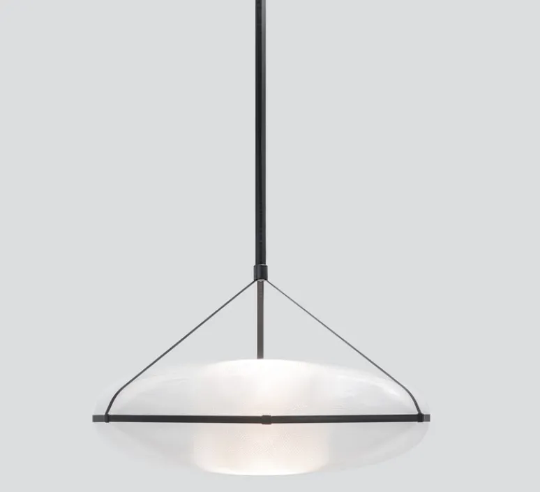 Découvrez l’étonnante suspension Iris, combinaison B/B, finition noire, imaginée par Caine Heintzman pour la maison canadienne A-N-D.