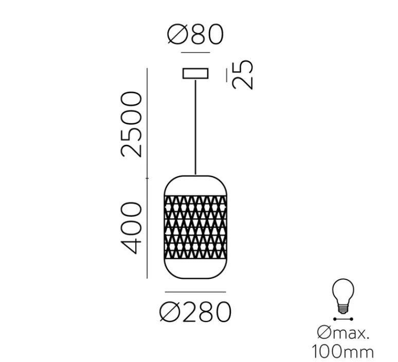 La suspension mesure 28cm de diamètre et 40cm de hauteur.
