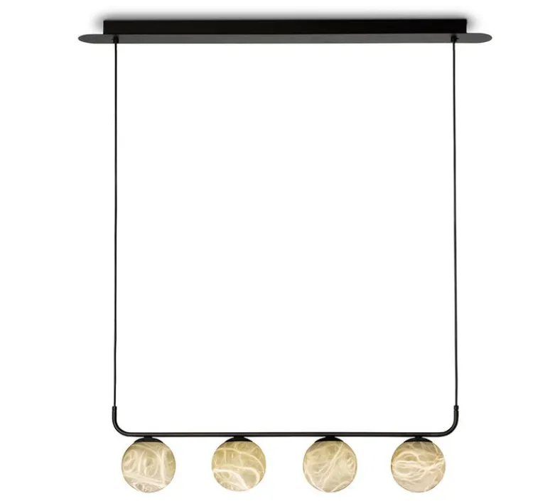 Tribeca est le nom du quartier branché de Manhattan, où d’anciens espaces industriels et des entrepôts restaurés ont été transformés en appartements. Ses rues regorgent de boutiques de charme, de galeries d’art et de lieux à l’atmosphère européenne, rétro, élégante et minimaliste, qui définissent parfaitement cette collection. Tribeca est une magnifique collection de luminaires réalisés avec des abat-jour sphériques en albâtre. Cette suspension aux quatre abat-jours idéal pour les espaces élégants et distingués, que ce soit dans une maison ou dans le salon d’un hôtel. L’albâtre des abat-jours transmet une grande chaleur et donne une lumière agréable, confortable et élégante.