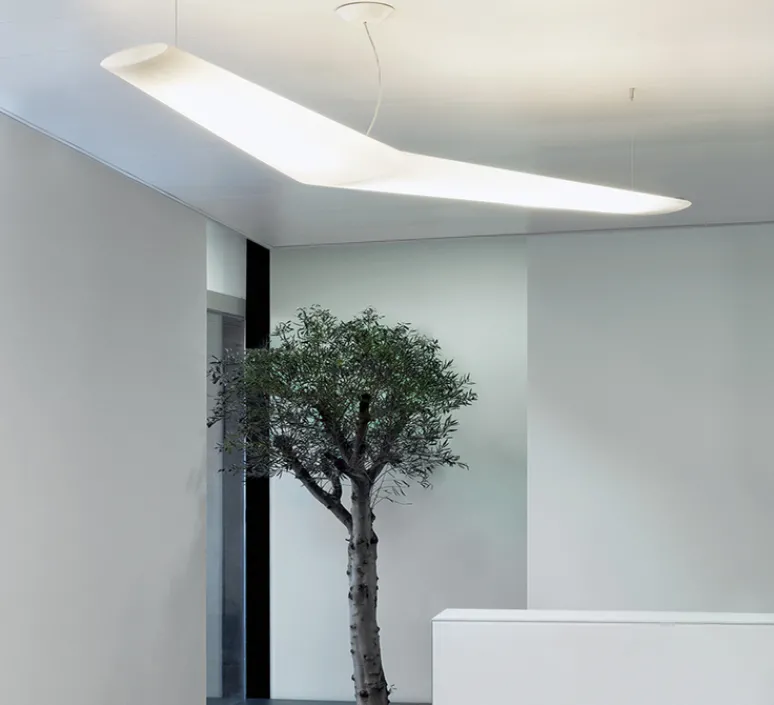 Avec son design en forme de mouette, cette suspension est à la fois simple et majestueuse. Elle habille tous les espaces, privés ou publics, avec force et modernité. Sa forme longiligne permet de diffuser une vaste lumière au-dessus d’une table à manger, un bureau ou un bar par exemple. Une suspension parfaite pour les projets.