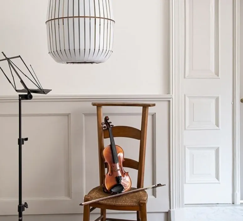 Cette suspension de coloris blanc est créée à partir de bois et d’aluminium, apportant une note épurée et chaude.