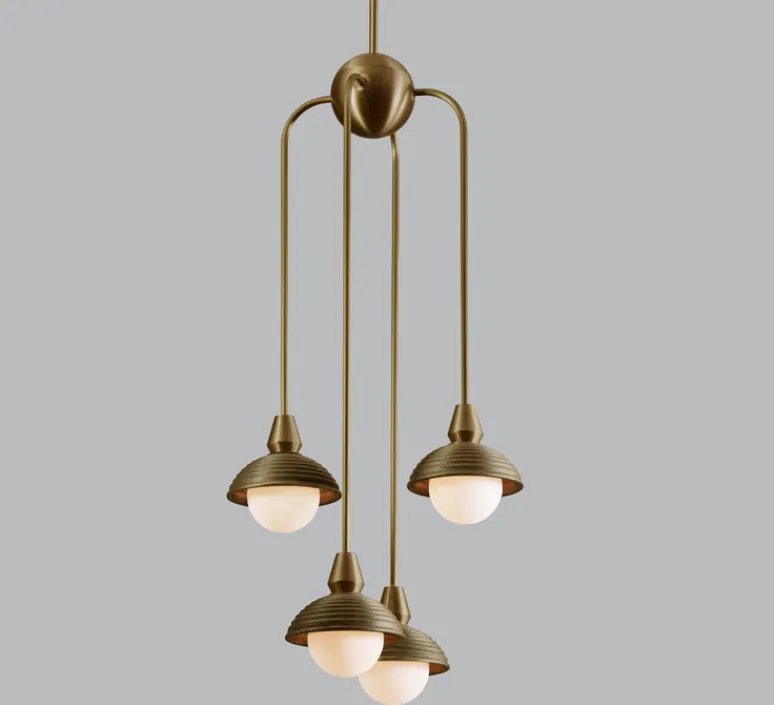 Créée par Robbie Llewellyn et Adam Yeats pour la marque Bert Franck, la suspension à 4 globes s’impose comme une pièce maîtresse de la collection Eos.