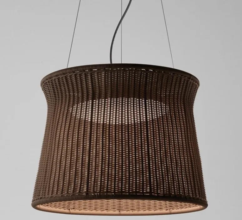 Son abat-jour tressé en fibre synthétique permet de résister aux intempéries tout en donnant un rendu naturel !