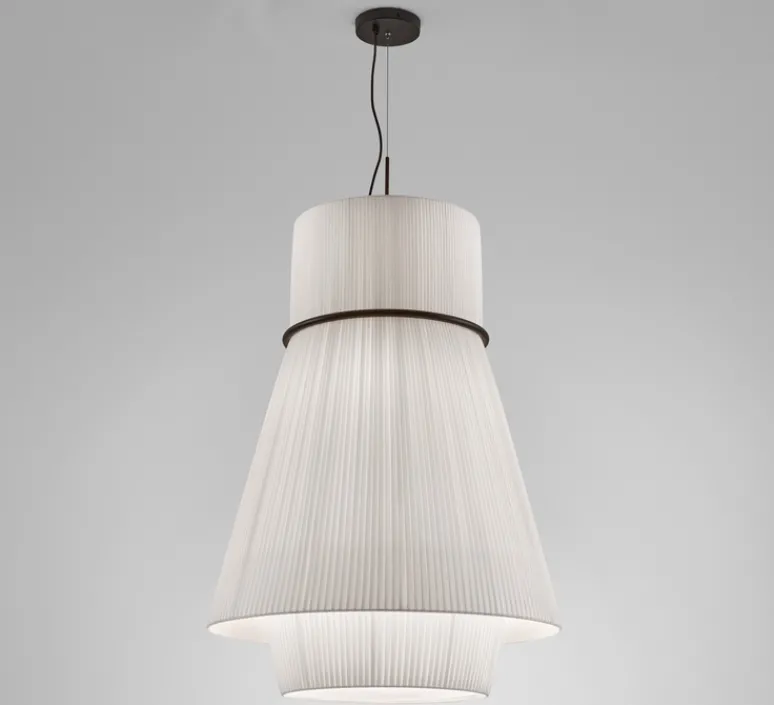 Chaque lampe est composée d’un ou de plusieurs abat-jours selon le modèle. Ils émettent une lumière filtrée à travers son ombre de ruban.