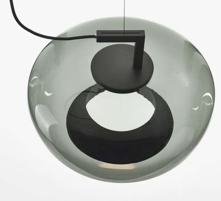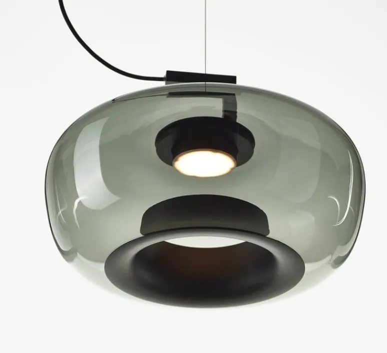 Découvrez la suspension Double de la maison tchèque Brokis, un luminaire moderne qui marie harmonieusement le verre et le métal.