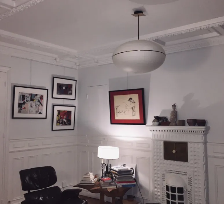 Cette suspension est une pièce unique, entièrement faite à la main, dans l’atelier de Céline Wright à Montreuil. Elle diffuse une lumière douce et raffinée, et crée une atmosphère poétique, partout où elle est placée. La disposition graphique et rayonnante des bandelettes souligne la pureté de ses formes cylindriques.
