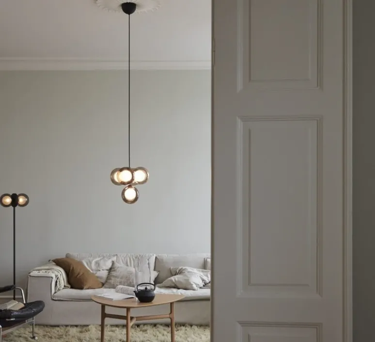 La lampe Discus a un design expressif qui apporte un touche originale et moderne à votre intérieur. Les diffuseurs opalins sont entourés de globes en verre fumé pour un effet chaleureux. La suspension est parfaite pour un éclairage d’ambiance comme au-dessus d’une table à manger mais convient également dans un couloir ou de chaque côté d’un canapé.