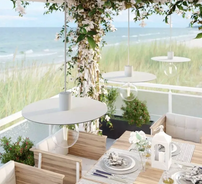 Avec son câble textile de 5 mètres, cette suspension offre une grande liberté d’installation. Elle s’intègre harmonieusement à divers styles d’aménagement. Parfaite pour sublimer un espace extérieur, elle trouvera idéalement sa place au-dessus d’une table sur une terrasse.