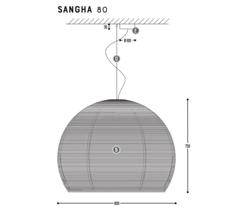 Sangha est disponible dans plusieurs tailles (longueurs : 30 cm- 40cm-50cm-80cm et 115cm de hauteur) et coloris (blanc, noir, rotin, chocolat, rose clair, jaune clair, bleu clair, vert clair, crème, bleu, jaune, vert et rouge).
