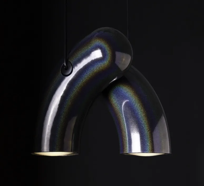 Cette suspension est le résultat d’une association avec l’artiste céramiste Gréta Jonckheere. La suspension Hyphen est conçue d’une seule pièce, sans soudure et à la main dans un atelier au Québec. De ce partenariat est né une forme unique, que Alexandre Joncas et Gildas Le Bars ont ensuite déclinée dans une version acier noir aux reflets chromatiques.
