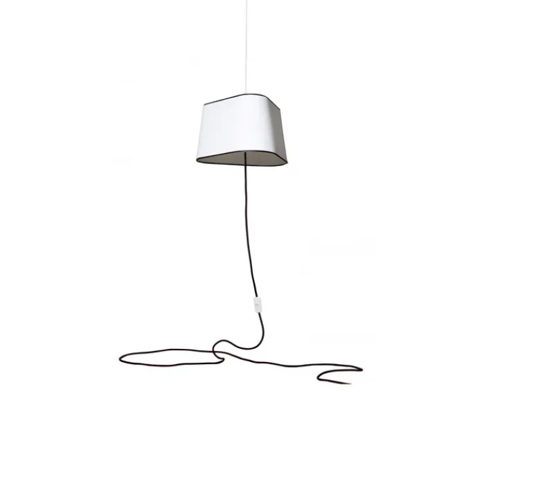 Sa simplicité et sa légèreté font d’elle un des éléments phares des collections Designheure. Elle est constituée d’un abat-jour blanc en tissu laqué de forme triangulaire et de bordures noires.