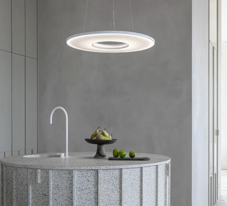 Cette suspension Iris illumine joliment et avec grâce votre intérieur. Au-dessus d’une table ou comme élément central dans votre salon, Iris est un halo lumineux qui donne du charme à votre décoration.