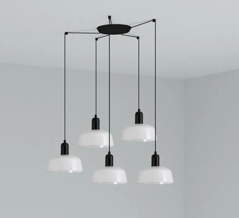 Découvrez le lustre Tatawin avec 5 suspensions en taille S en finition blanc de la maison Faro.
