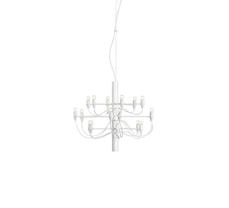 2097/18 est une suspension à lumière diffuse composée d’une structure centrale en forme de tube, de laquelle partent 18 bras en acier, chacun accueillant une ampoule. 2097 a la silhouette d’un chandelier classique et une allure moderne. Raffiné et iconique, 2097 s’intègre dans tous les intérieurs, qu’ils soient privés ou publics, classiques ou modernes, que la suspension soit utilisée dans un salon, au-dessus d’une table ou dans une entrée.