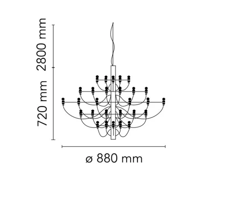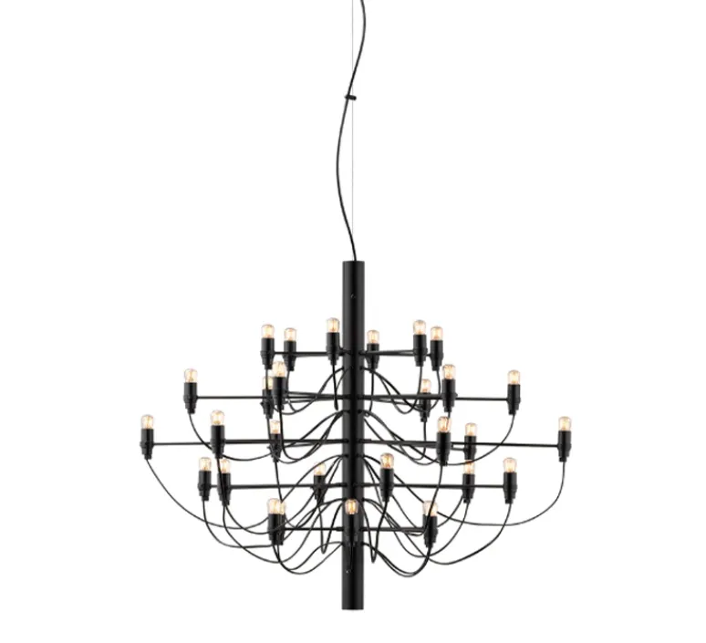 2097/30 est une suspension à lumière diffuse composée d’une structure centrale en forme de tube faite de fer, de laquelle partent trente bras en laiton, chacun accueillant une ampoule. 2097 a la silhouette d’un chandelier classique et une allure moderne. Raffiné et iconique, 2097 s’intègre dans tous les intérieurs, qu’ils soient privés ou publics, classiques ou modernes, que la suspension soit utilisée dans un salon, au-dessus d’une table ou dans une entrée.