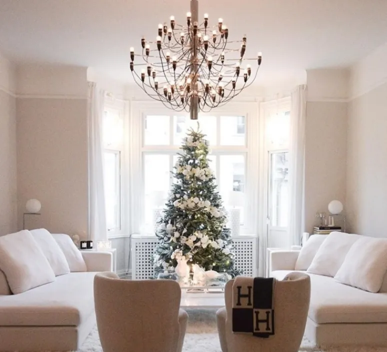 2097/30 est une suspension à lumière diffuse composée d’une structure centrale en forme de tube faite de fer, de laquelle partent trente bras en laiton, chacun accueillant une ampoule. 2097 a la silhouette d’un chandelier classique et une allure moderne. Raffiné et iconique, 2097 s’intègre dans tous les intérieurs, qu’ils soient privés ou publics, classiques ou modernes, que la suspension soit utilisée dans un salon, au-dessus d’une table ou dans une entrée.