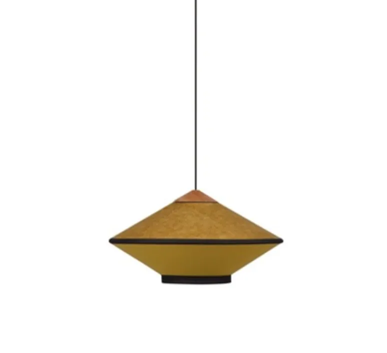 Grâce aux matériaux utilisés, Cymbal apporte une véritable touche japonaise à votre intérieur. L’abat-jour est conçu en velours pour la partie supérieure et en tissu pour la partie inférieure. Cet effet de matières permet de distinguer clairement les deux cymbales symbolisées par la suspension. Le diffuseur répand ainsi une lumière tamisée renforçant la légèreté du luminaire. Cymbale existe en 50cm de diamètre, 70cm ou 95cm et dans diverses couleurs : vert, bleu atlantique, bleu nuit, rose poudré, naturel, or ou bronze.