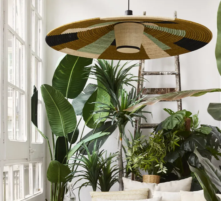 Le luminaire Parrot est composé d’un abat-jour conique tissé de fil d’abaca, d’un diffuseur en raphia dissimulant la source lumineuse, d’un élément en bois reliant au câble et d’une rosace. Prenant ses inspirations dans l’art ancestral qu’est la vannerie et dans des camaïeux issus de paysage, la suspension Parrot se place dans chaque intérieur, que ce soit individuellement ou à plusieurs, dans une chambre, un salon ou un bureau.
