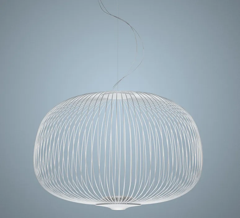 De nature sobre, le luminaire Spokes s’adapte à tout type d’espace (domestique et public) : un séjour, une cuisine, un hall d’entrée, une chambre ou un bureau. Cette lampe aux formes sphériques et à l’allure légère dispose d’une source lumineuse LED 2700K 4080lm incluse ; elle permet d’obtenir des jeux d’ombres et lumières exceptionnels ; qui se projettent sur les parois de la suspension avec un effet de démultiplication.