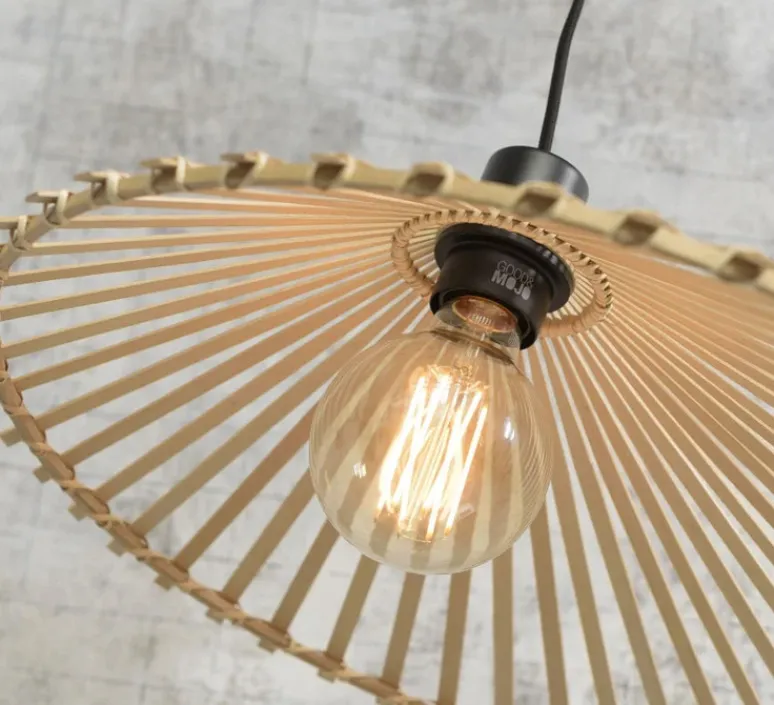 Son tressage en bambou laisse passer une lumière douce, idéale pour créer une ambiance apaisante dans un salon, une chambre ou une pièce à vivre au style naturel ou bohème.