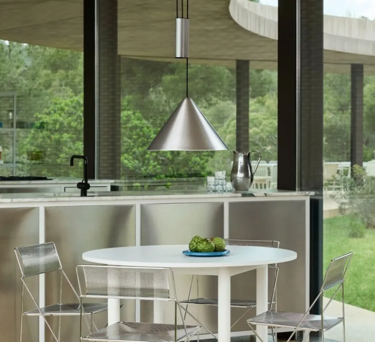La suspension Compass, imaginée par le designer Julien Renault pour HAY, séduit par sa silhouette conique épurée et son équilibre subtil entre fonctionnalité et esthétisme.