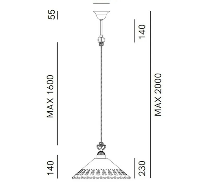 La suspension mesure 40cm de diamètre pour une hauteur de 23cm.