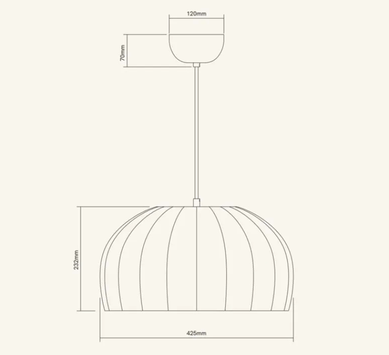 La suspension mesure 42,5cm de diamètre et 23,2cm de hauteur.