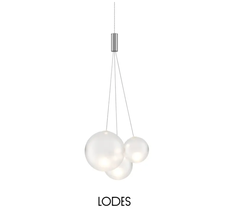 Suspension*Lodes Suspension, Random sans rosace, , LED, dim, 3000K, 480 lm, Ø29cm, H79,5cm – chrome, blanc givré