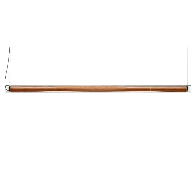 Estela est une capsule de lumière captivante. Elle est une pièce unique de verre borosilicate soufflée à la main, le verre enveloppant un diffuseur cylindrique en placage de bois. Ce dernier abrite une source de lumière LED à intensité variable, et une ouverture droite sur un côté émet vers le bas une lumière qui est adoucie par le verre.