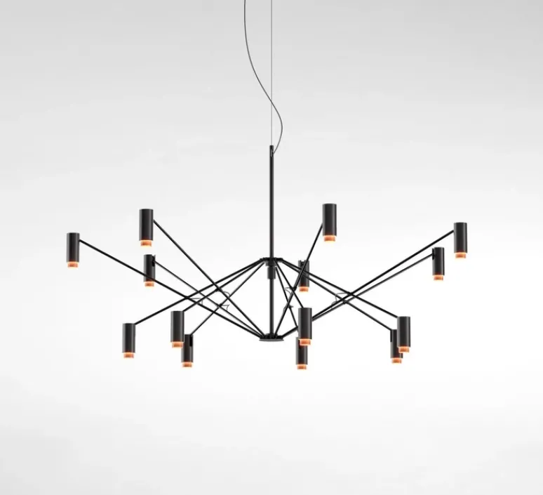 Cette organisation rend la suspension flexible et adapté aussi bien aux espaces qu’aux petits. Ainsi le luminaire se plie et se déplie selon vos envies.