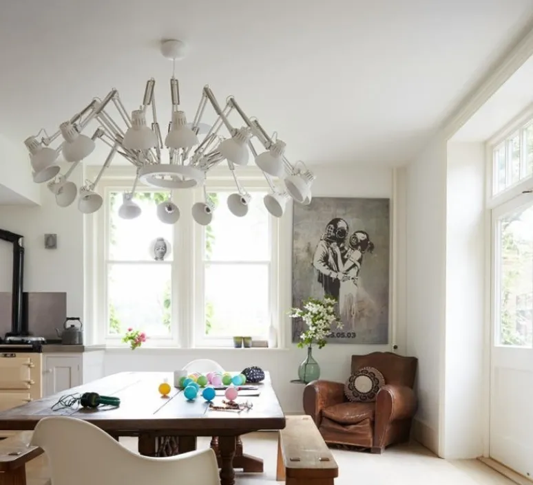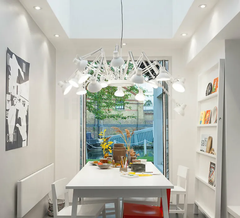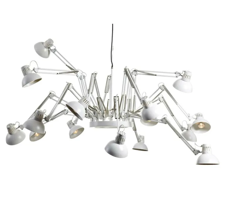 Ce lustre noir, doté de 16 bras ajustables, révèle un design original, en forme d’araignée. Son nom fait référence au fameux designer allemand Ingo Maurer…