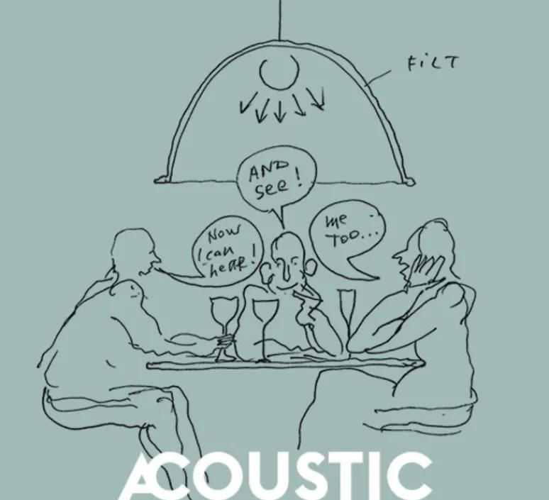 L’histoire de la conception de la suspension Under The Bell a commencé lors d’un diner entre amis avec le designer Boris Berlin. Quand le serveur a essayé de présenter à Boris et son groupe le menu du soir, le bruit et le niveau sonore était tellement puissant que personne ne s’entendait. De là est venu, naturellement l’idée de créer ce luminaire. La conception d’une coupole acoustique, une sorte de mini-dôme pour chaque table, a alors vu le jour.