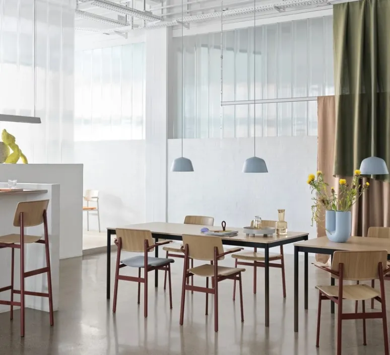 Voici la suspension Ambit, finition bleu clair, dessinée par TAF Architects, pour la maison danoise Muuto.
