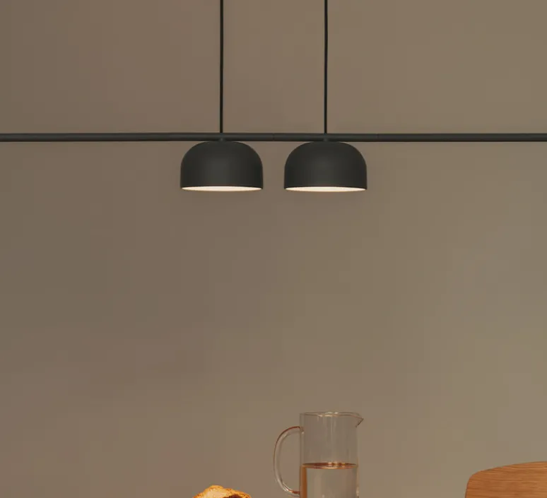 Avec sa finition en métal nickelé brossé de couleur noir graphite, la Belle 09 Semi séduit par sa forme longiligne et épurée. Son design discret mais percutant s’intègre parfaitement dans des environnements contemporains, que ce soit au-dessus d’une table à manger, dans un salon ou un bureau.