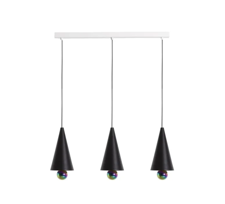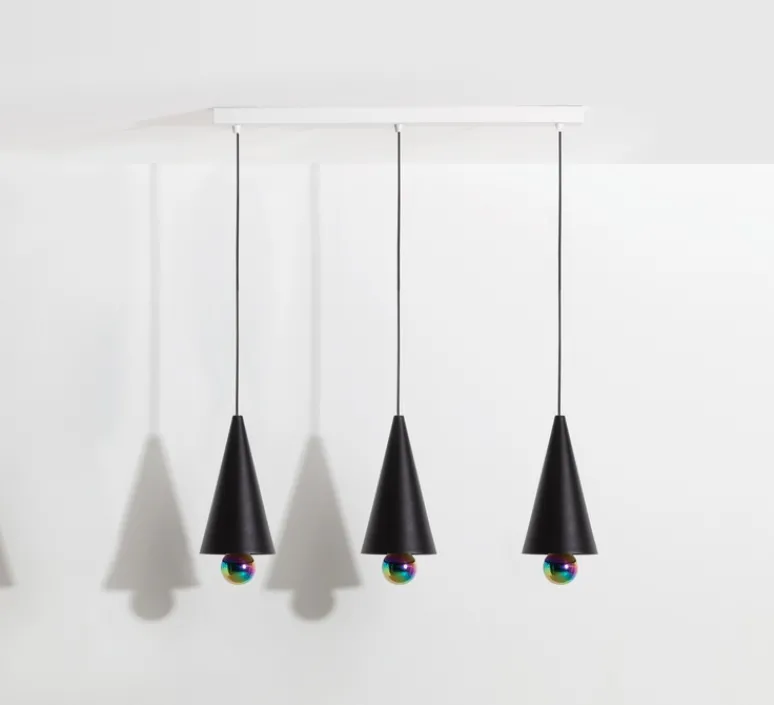 Découvrez l’iconique Cherry avec 3 suspensions de petites tailles en finition noir de la maison Petite Friture, réalisée par le studio de design australien Daniel et Emma.