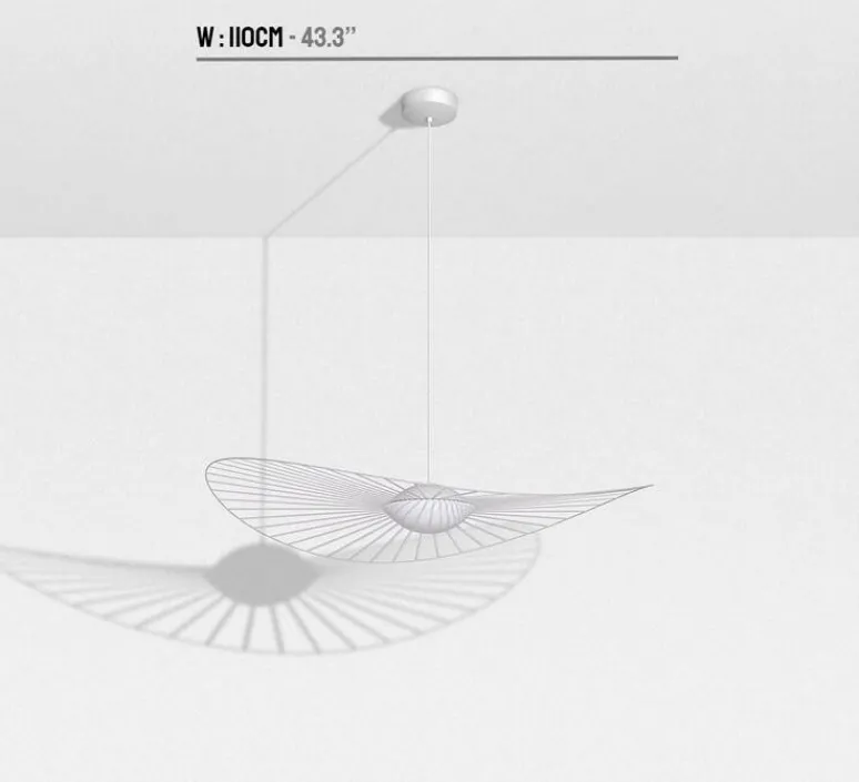 Ce luminaire est conçu en fibre de verre, acier, rubans de polyuréthane, aluminium et verre triplex. La douille et la rosace sont fournies. LED intégrée. Driver non requis. Dimmable. La suspension mesure 110cm de diamètre et 11,5cm de hauteur. Câble ajustable de 1.8m en blanc ou noir.