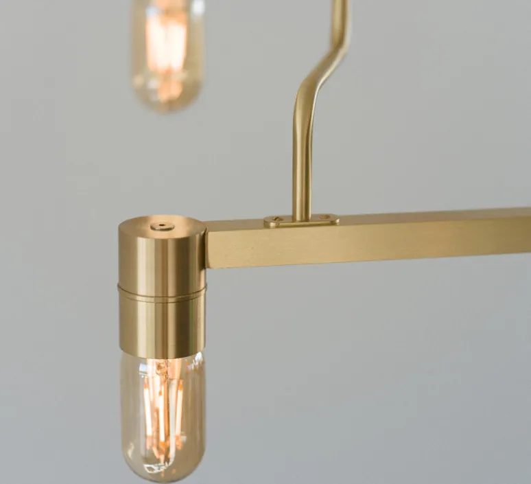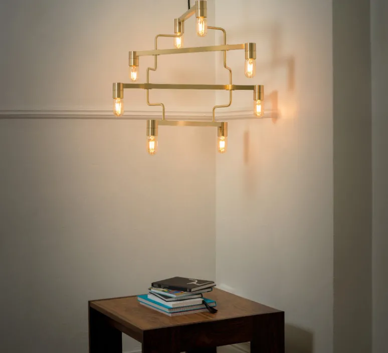 Avec sa structure composé de bras en laiton et ses ampoules exposées, ce luminaire impose une présence équilibrée et graphique. Le chandelier Kennedy s’intégrer aussi bien dans un intérieur contemporain que dans un espace plus classique, en apportant une touche sobre et affirmée. Installé au-dessus d’une table de repas ou dans un salon, ce chandelier transforme la lumière en une pièce maîtresse saisissante et contemplative pour n’importe quel espace.