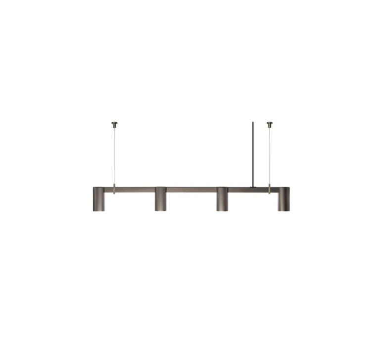 La suspension Long Kennedy 4 mesure 123 cm de long et 15 cm de haut, offrant un éclairage direct et dimmable pour s’adapter à toutes vos envies. Elle est livrée avec une suspension en fil de fer assortie à sa finition bronze.