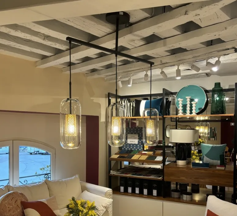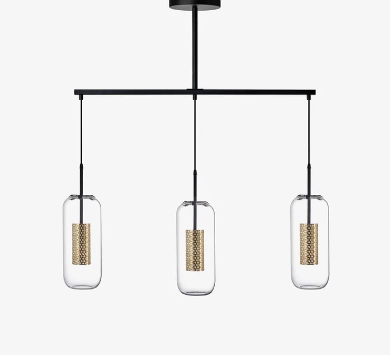 Sur le plan esthétique, le lustre Vadim Trio séduit par son mélange équilibré entre verre et laiton, ainsi que par ses lignes géométriques et ses courbes délicates. Pensé comme un trio de globes suspendus, il apporte une touche d’élégance et de sophistication à tout intérieur. La cage perforée permet un éclairage tamisé et subtil, tandis que le travail du verre soufflé ajoute une dimension artistique et lumineuse à la pièce. Chaque globe est relié à un câble textile réglable en hauteur, offrant une flexibilité d’installation pour s’adapter parfaitement à votre espace.