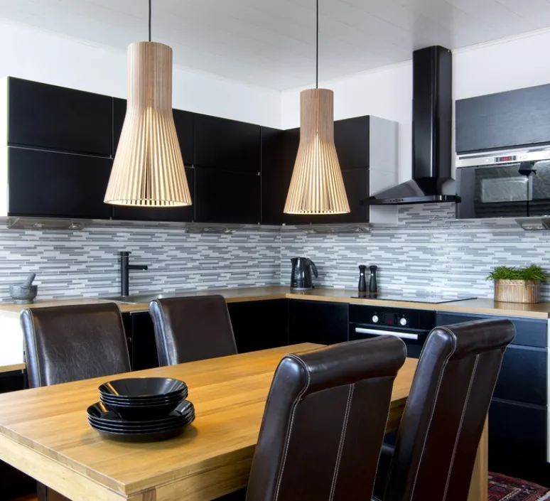 Cette lampe scandinave au design simple est composée de lamelles de bois et contreplaqué de bouleau certifié PEFC, un matériau écologique. Elles sont reliées à une structure légère en contreplaqué utilisé pour l’aviation.