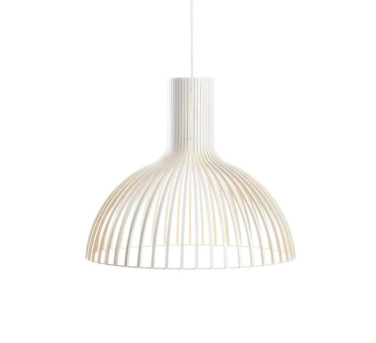 Voici la suspension Victo (Ø56cm) de coloris blanc, naturelle et contemporaine, dessinée par Seppo Koho le designer à l’origine de la maison d’édition Secto design.