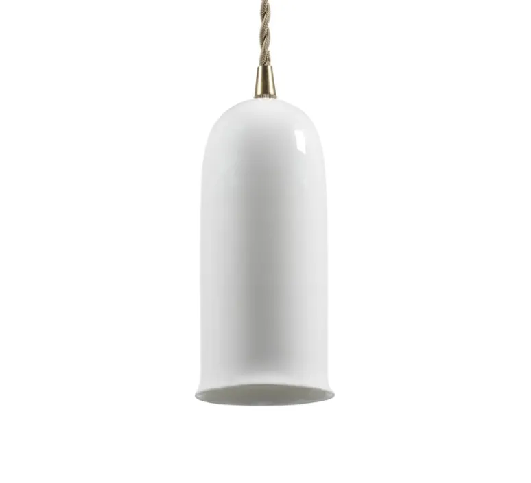 La suspension N°1 se compose d’un abat-jour cylindrique en porcelaine Bone China ultrafine rattaché à un câble tissé par une attache en laiton. Pour adoucir ce luminaire à la forme intemporelle, le bas de l’abat-jour est légèrement recourbé pour avoir la forme d’une clochette. Chaque forme des lampes de la collection est finie à la main pour incarner l’esthétique réfléchie d’Anita Le Grelle.