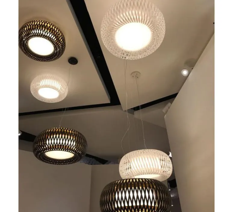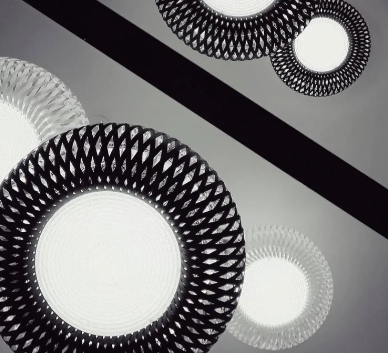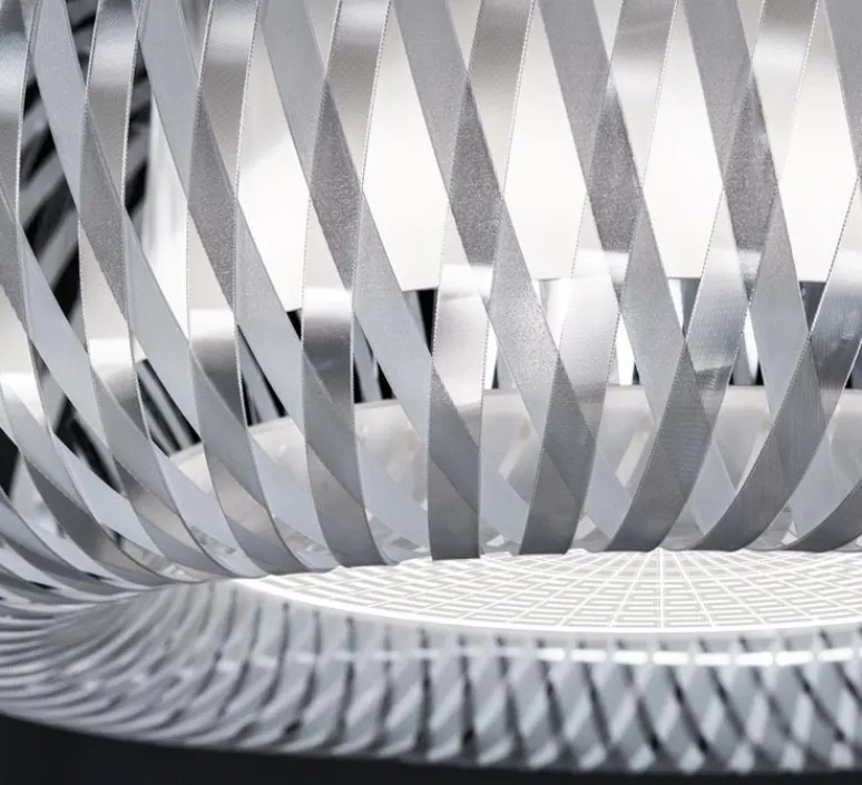 Faite de Lentiflex® transparente et de polycarbonate, la lumière est diffusée tout autour de l’abat-jour de manière agréable ! Cette spécificité vaut le nom de son coloris : prisme ! Kalatos est inspirée des techniques de tressage des paniers avec une pointe de high-tech !