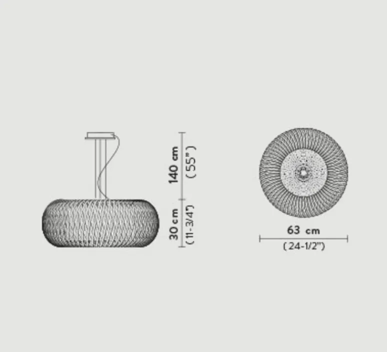La suspension Kalatos mesure 30cm de hauteur pour 63cm de diamètre. Il existe une version noire et or à l’intérieur, et une version plafonnier. N’hésitez pas à les assembler ensemble pour des compositions incroyables !