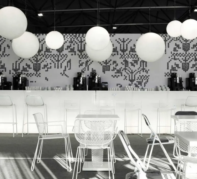 Le luminaire Globo est facile à installer grâce à son câble noir de 3 mètres et sarosace en métal blanc. Fabriqué en Italie en Polyéthylène dans les ateliers Slide, ce matériau prend toute son utilité dans les projets d’hôtels, terrasse, patio …