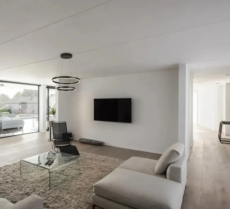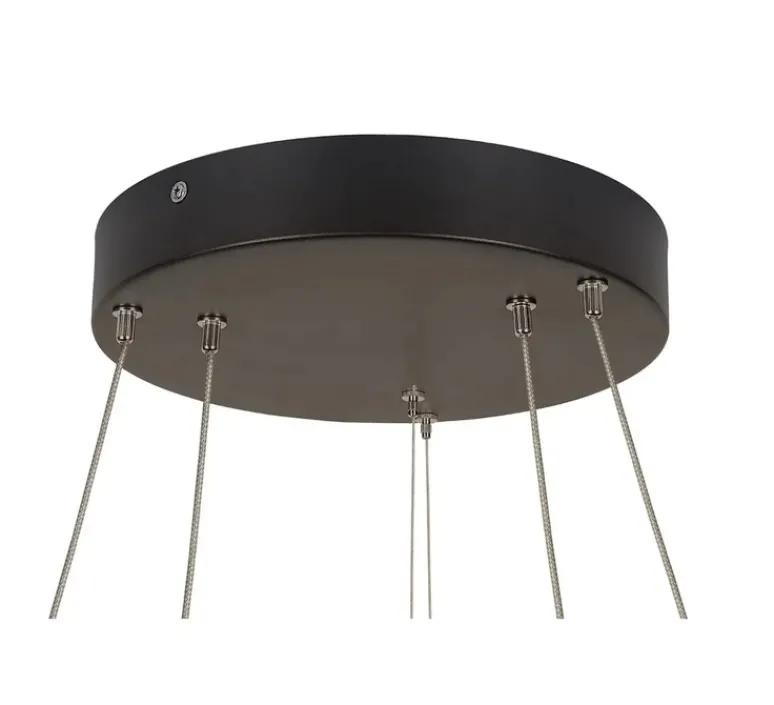 Composée de deux anneaux noirs en aluminium, avec des LED intégrées et reliée par des câbles, la suspension émet un angle de rayonnement de 360° et nécessite très peu d’entretien. Les LED possèdent un CRI supérieur à 90 qui garantit un rendu de couleur de qualité et proche de la lumière naturelle.